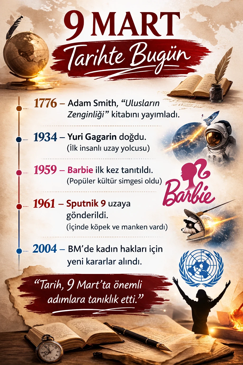Sovyet kozmonot Yuri Gagarin, 9 Mart 1934’te doğdu. Gagarin, 1961 yılında Vostok 1 uzay aracıyla uzaya çıkarak uzaya giden ilk insan olarak tarihe geçti.