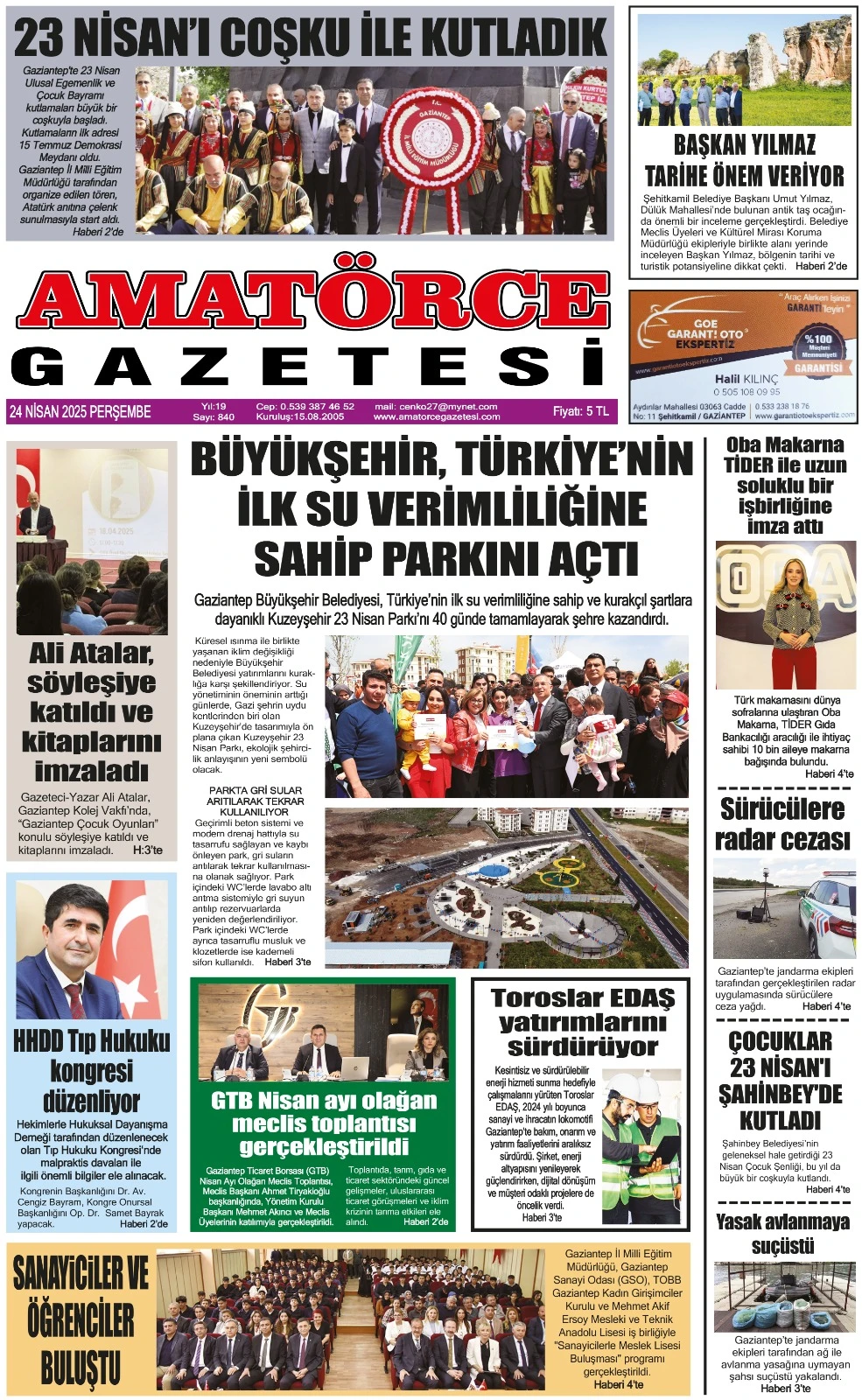 <div>Amatörce Gazetesi 840. Sayı 1. Sayfa </div>
