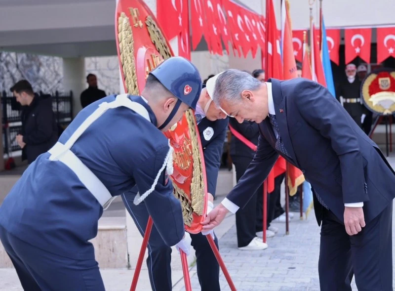 Hükümet Konağı önünde düzenlenen törende, Vali ve Büyükşehir Belediye Başkan Vekili Tuncay Akkoyun ile 5. Zırhlı Tugay Komutanı Tuğgeneral Erdin Kaya, Atatürk Anıtı'na çelenk sundu.
