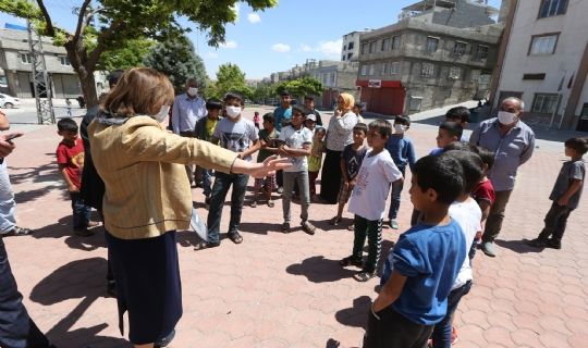 Gaziantep Büyükşehir Belediye Başkanı Fatma Şahin, daha önce yaptığı Akdere Mahalle ziyaretinde maskesini takan ve hijyen kurallarına uyan çocuklar için verdiği bisiklet sözünü yerine getirdi, ayrıca tişört ve termos bardak da hediye etti.