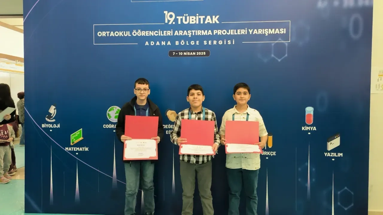 Tam 1280 proje arasından sıyrılarak Türkiye ikinciliği elde eden öğrenciler, Adana Bölge Finali’nde sergiledikleri “Sıcaklık Değişiminin Ses Dalga Hızına Etkisinin STEAM Yöntemi ile Gösterilmesi” başlıklı projeleriyle bilim dünyasında adlarından söz ettirdiler.
