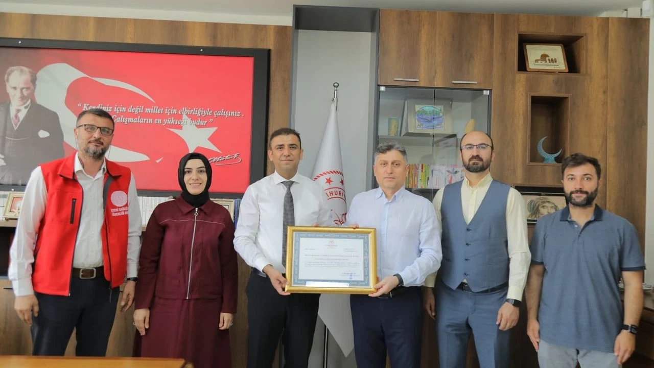 Belge, İl Sağlık Müdürü Dr. Beytullah Şahin tarafından İl Milli Eğitim Müdürü Dr. Erdal Kılınç’a takdim edildi. Törene, Halk Sağlığı Hizmetleri Başkanı Doç. Dr. Mikail Özdemir, Başkan Yardımcısı Dr. Adem Sarı ve Uzm. Merve Eyinacar da katıldı.