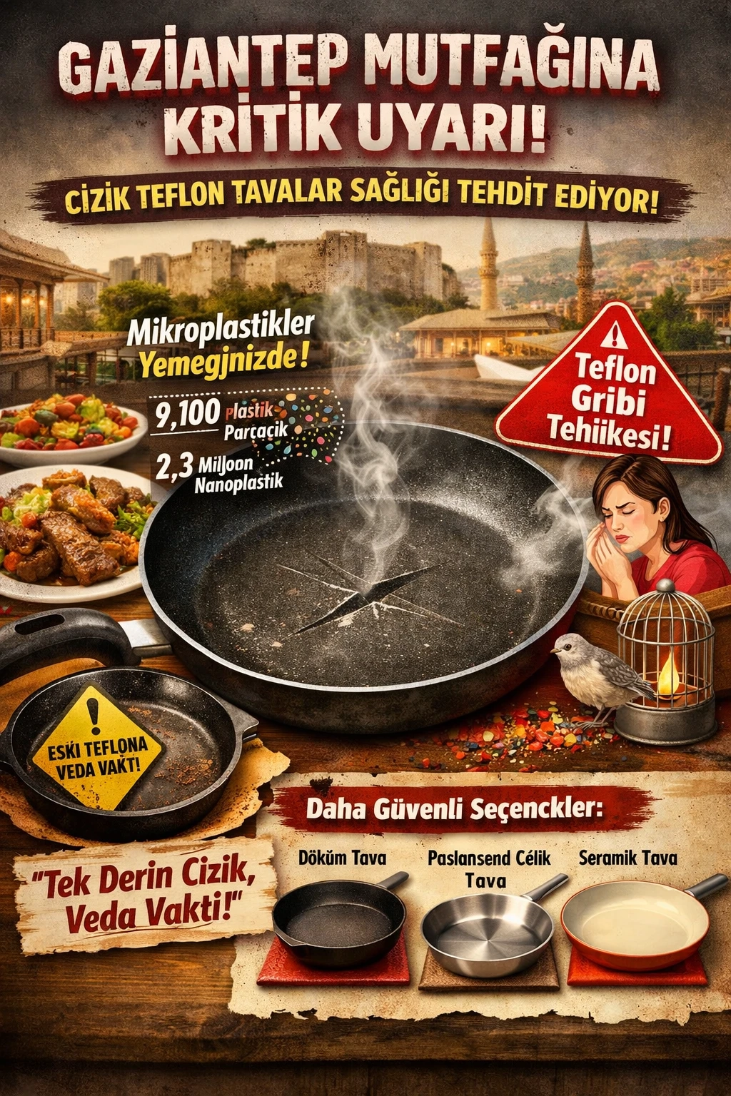 Yetkililer ve uzmanlar, “Gaziantep mutfağının zenginliği kadar sağlığı da korunmalı” diyerek özellikle ev hanımlarını ve yoğun yemek pişiren aileleri çizik teflon tavalar konusunda daha duyarlı olmaya çağırıyor.