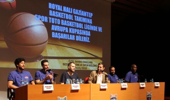 Abdulkadir Konukoğlu Kültür ve Spor Merkezi’nde düzenlenen söyleşiye ortaokul, kolej, fen ve teknoloji liseis öğrencileri, yöneticileri, öğretmenleri, Gaziantep Royal Halı Basketbol Takımı Genel Menajeri Boray Dai, Antrenör Stefanos Dedas, Takım Kaptanı Erden Eryüz ile sporculardan Altan Erel, Andy Rautins ve Jawad Williams katıldı.