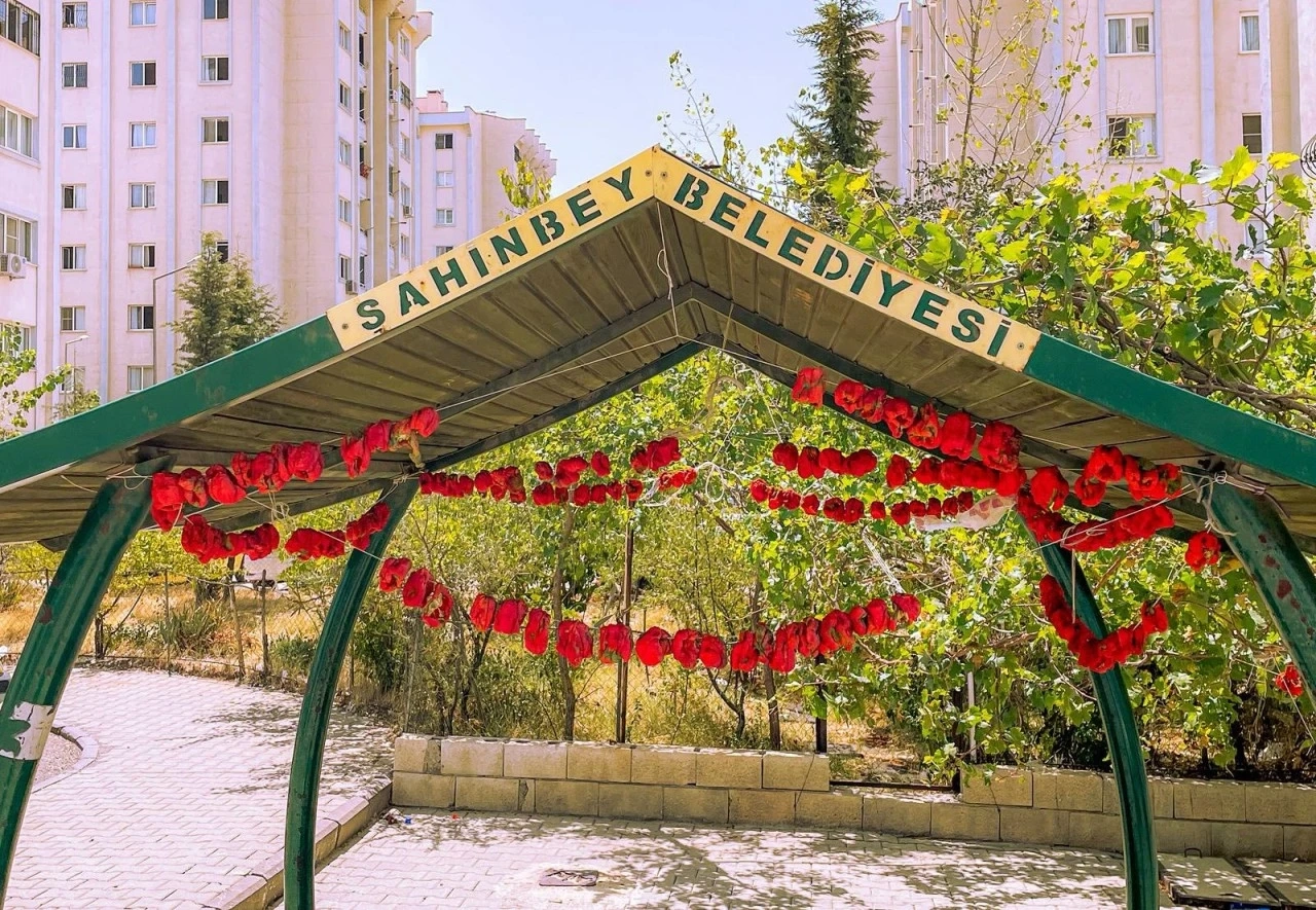 Şahinbey ilçesi Mavikent Mahallesi’nde sokaklar, balkonlar ve parklar iplerle asılmış kırmızı biberler ve mor patlıcanlarla adeta bir renk cümbüşüne dönüştü. Boş kalan her alan, güneşin altında kuruyan sebzelerle dolup taştı.