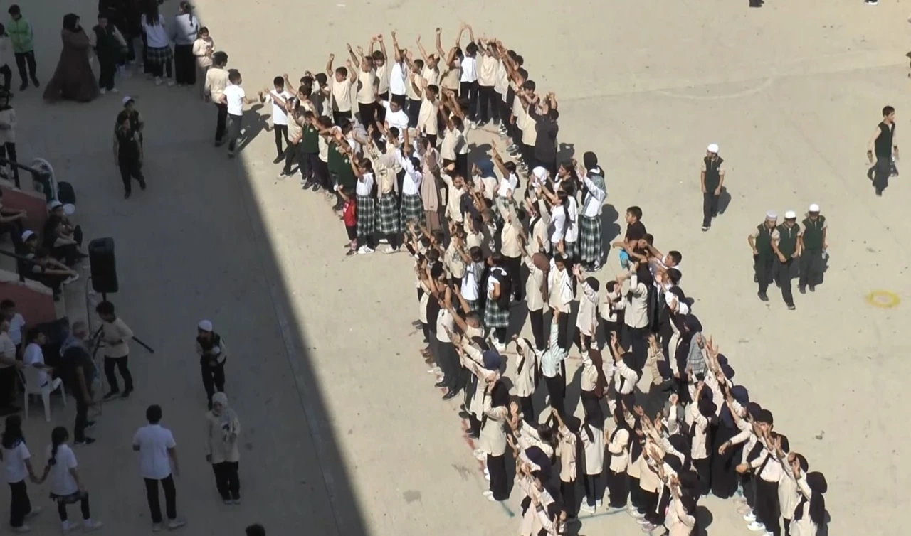 Bu kapsamda Gaziantep’te duyarlı ortaokul öğrencileri, Aksa Tufanı’nın yıl dönümü nedeniyle okul bahçesinde "Gazze" koreografisi oluşturarak, İsrail’in saldırılarına tepki gösterdi. Şehitkamil ilçesindeki Emine Konukoğlu İmam Hatip Ortaokulu öğrencileri ve öğretmenleri "Filistin ve Gazze" temalı farkındalık etkinliği kapsamında bir araya geldi. Gazze yararına hayır çarşısının da düzenlendiği okulda 200 öğrenci "Gazze" koreografisi oluşturarak Gazze’ye destek verdi. Gazze’de yaşanan insanlık dramına dikkat çekmek amacıyla okul bahçesinde bedenleriyle koreografi hazırlayan öğrencilerin bu anlamlı desteği büyük takdir topladı. Yüzlerine boyalarla Filistin bayrağı çizen ve "Özgür Gazze" sloganı da atan öğrenciler, saldırılarda hayatını kaybeden çocuklar için dua okudu. Gazze yararına düzenlenen hayır çarşısı etkinliği büyük ilgi gördü