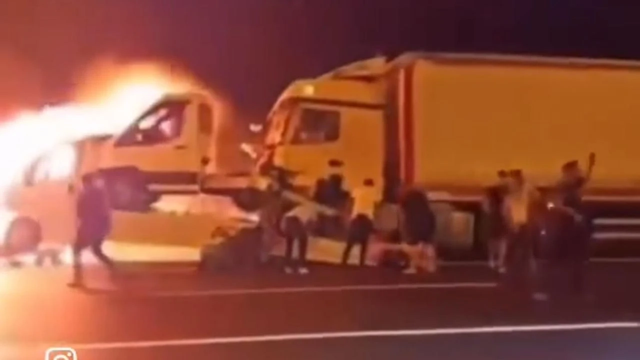 Zincirleme kazanın ardından tır ve kurtarıcı araçta yangın çıktı. Alevlerin otoyolu sardığı olay yerine kısa sürede ulaşan itfaiye ekipleri, yangını kontrol altına alarak söndürdü. Polis ekipleri ise bölgeyi güvenlik çemberine alarak trafiği kontrollü şekilde yönlendirdi.