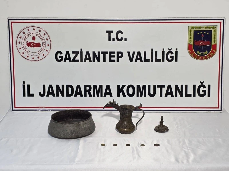 Gaziantep İl Jandarma Komutanlığı ekipleri, Gaziantep Cumhuriyet Başsavcılığı koordinesinde tarihi eser kaçakçılığının önlenmesine yönelik gerçekleştirdiği önleyici kolluk devriyesi sırasında, define bulmak amacıyla izinsiz kazı yapıldığı bilgisine ulaştı. Yapılan çalışmada Ş.T., M.Ç., K.B., H.B. ve M.E. isimli şüpheliler, suçta kullandıkları malzemelerle birlikte yakalanarak gözaltına alındı.
