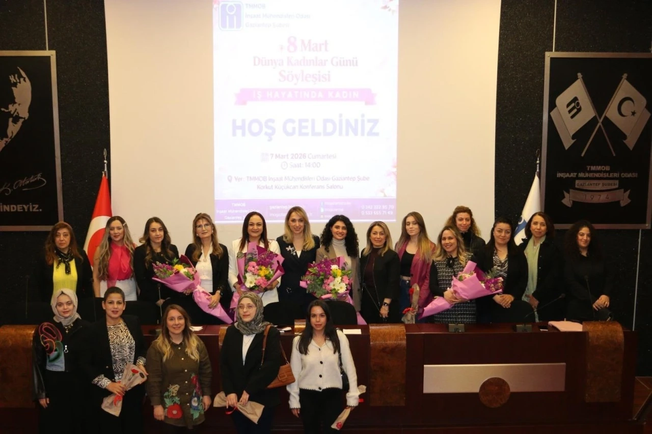 İMO Gaziantep Şubesi Sayman Üyesi Didem Öğümsöğütlü, söyleşinin açılışında yaptığı konuşmada kadın haklarının tarihsel gelişimini anlattı. Öğümsöğütlü, “Biliyoruz ki kadınlar tarih boyunca toplumun her alanında var olmuştur. Ancak, ne yazık ki tarih boyunca adil ve eşit şartlar altında yaşamamışlardır. Kadın hakları ile ilgili ilk kıvılcımın başladığı günden bu yana dünya kadınları var olmak ve görünür olmak için büyük mücadeleler vermiştir. O günden bu güne tarihte iz bırakmış kadınlarımız büyük kazanımlar elde etmiş olsa da, biz bayrağı devralmış emekçi iş kadınları olarak hayatın her alanında kadınların iş hayatındaki rolünün güçlendirilmesi için mücadeleye devam ediyoruz” şeklinde konuştu.