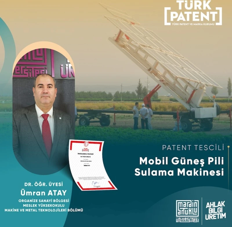 Organize Sanayi Bölgesi Meslek Yüksekokulu (OSB MYO) Makine Programı Dr. Öğr. Üyesi Ümran Atay tarafından geliştirilen “Mobil Güneş Pili Sulama Makinesi”, Türk Patent ve Marka Kurumu tarafından incelemeli patent belgesi ile tescil edildi.