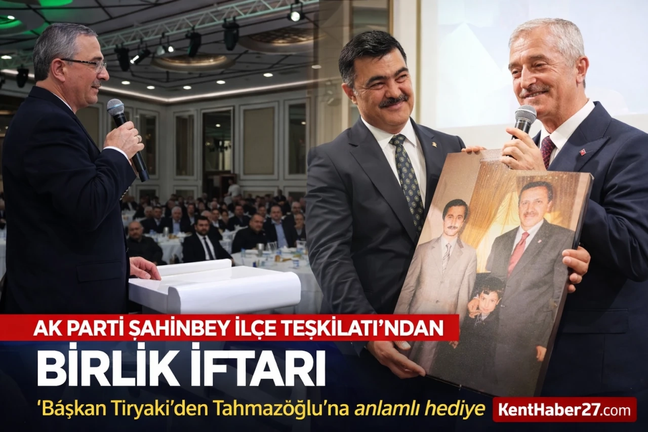 Programda dikkat çeken anlardan biri de İlçe Başkanı Mehmet Tiryaki’nin, Şahinbey Belediye Başkanı Mehmet Tahmazoğlu’na takdim ettiği özel hediye oldu.