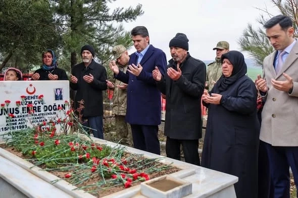 Program kapsamında şehidin kabri başında Kur’an-ı Kerim tilaveti okunarak dualar edildi. Protokol üyeleri, Şehit Yunus Emre Doğan’ın ailesiyle yakından ilgilenerek taziyelerini iletti, sabır ve metanet temennisinde bulundu.