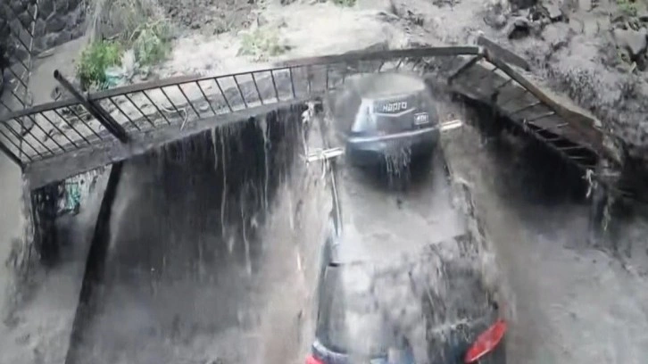O anlarda binanın önünde temizlik yapan kadın görevli de çöken istinat duvarının altından kalmaktan dakikalarla kurtuldu. İstinat duvarı altında kalan yabancı plakalı otomobilde maddi hasar meydana gelirken, o anlar binanın güvenlik kamerasına yansıdı. Binanın çevresinde güvenlik önlemleri alınırken, belediye ekipleri tarafından çalışma başlatıldı.