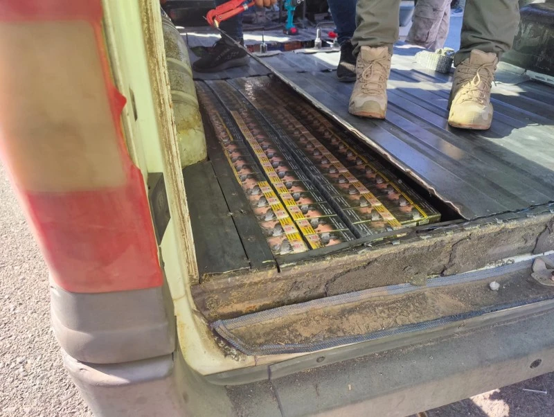 Mardin Jandarma. kasası zulaya dönüştürlen araçta 16 bin paket kaçak sigara ele geçirdi