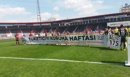 Gaziantepsporlu futbolcular da bu hafta etkinliklerine tüketiciyi bilgilendirici bir pankart ile destek verdi.