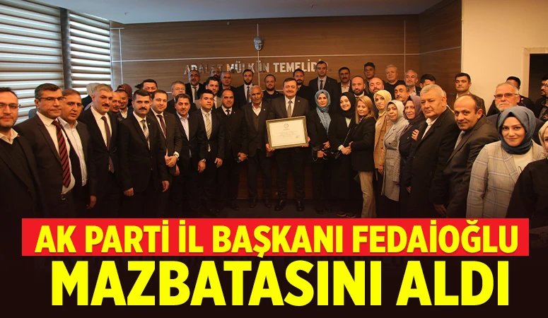 İl Başkanı Fatih Muhaddis Fedaioğlu, 7 Aralık’ta AK Parti’nin 8. Olağan İl Kongresi’nde seçildikten sonra, Şehitkâmil İlçe Seçim Kurumu’nda düzenlenen törenle mazbatasını İlçe Seçim Kurulu Başkanı Hakim Ramazan Can’ın elinden aldı. Fedaioğlu, mazbatasını teslim alarak resmi görevine başladı.