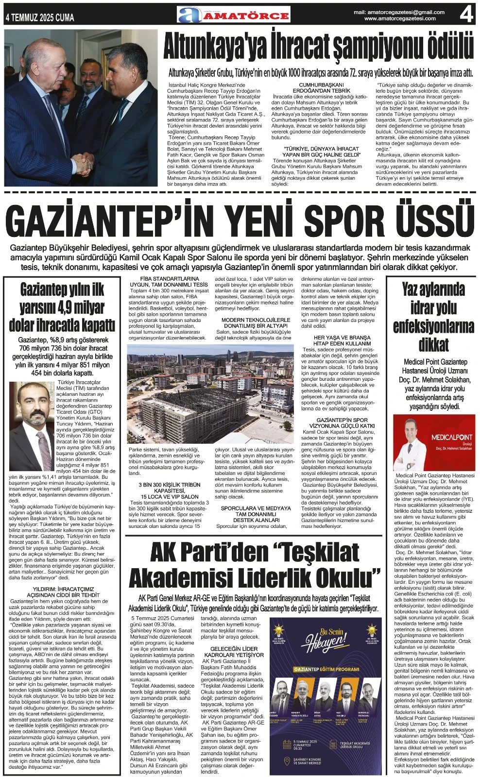 Gündem Amatörce Gazetesi 850. Sayı 4. Sayfa Amatörce Gazetesi 850. Sayı 4. Sayfa 04-07-2025 16:07 GAZİANTEP Amatörce Gazetesi 850. Sayı 4. Sayfa Editor : Amatörce Gazetesi Amatörce Gazetesi 850 Sayı 4 Sayfa 325 OKUNMA