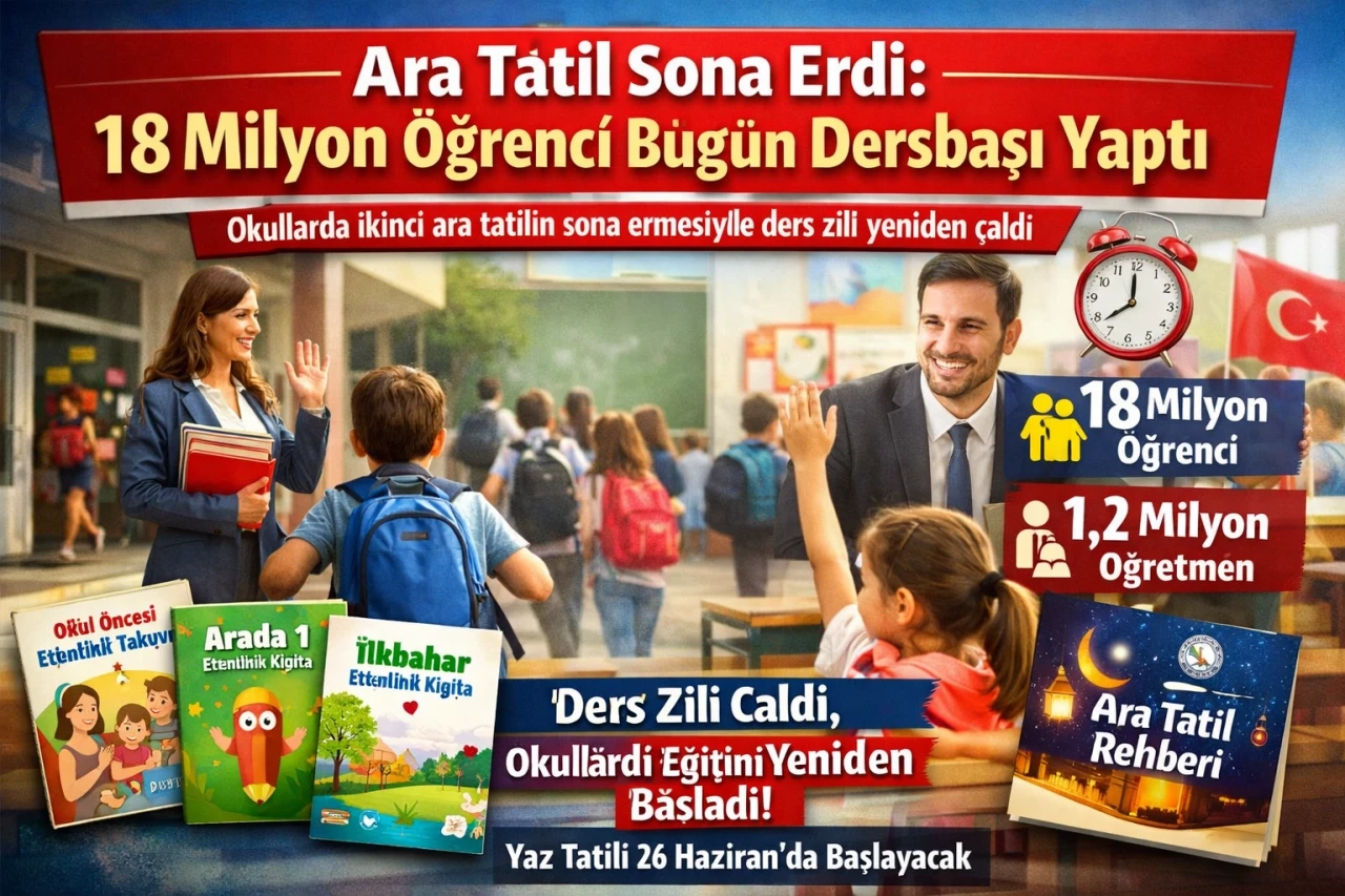 Ara tatilin ardından ülke genelinde tüm okullarda eğitim öğretim kaldığı yerden devam ederken, 2025-2026 eğitim öğretim yılı ikinci dönemi 26 Haziran’da sona erecek.