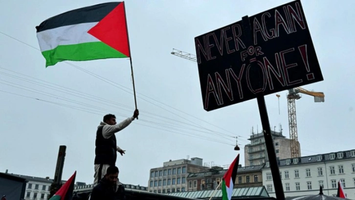 Danimarka'nın başkenti Kopenhag'daki Maersk binasının girişinde oturan "Filistin Gençlik Hareketi" isimli grup, denizcilik şirketinin İsrail'e "silah ticaretinin doğrudan yapılmasını kolaylaştırdığını ve bundan kazanç sağladığını" belirtti.
