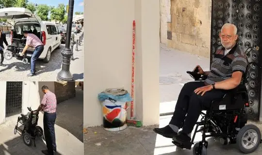 ekipleri tarafından akülü tekerlekli sandalyesi evinde teslim edilen Özkes, eskiden olduğu gibi