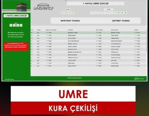Gaziantep Büyükşehir Belediyesi tarafından düzenlenen Umre organizasyonu kapsamında 1. Kafile için kura çekilişi yapıldı. Dijital ortamda şeffaf bir şekilde gerçekleştirilen çekilişte, kutsal topraklara gitmeye hak kazanan vatandaşların isimleri belirlendi.