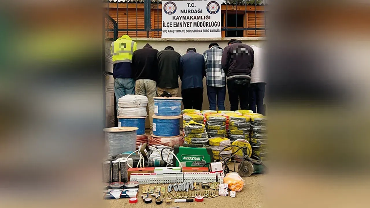 Gaziantep İl Emniyet Müdürlüğü tarafından yapılan açıklama şu şekilde; “Nurdağı İlçe Emniyet Müdürlüğü ekiplerimizce 14.04.2025 tarihinde bir depodan 600.000 TL değerinde elektrik kablosu ve muhtelif inşaat malzemelerini çaldığı tespit edilen 6 şüpheli tutuklanmıştır. Kamuoyuna saygıyla duyurulur.” ifadelerine yer verildi.