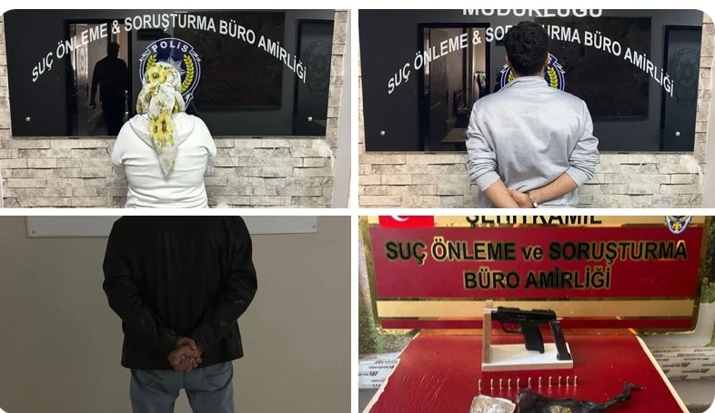 Operasyonda ayrıca 1 adet ruhsatsız tabanca, 11 adet fişek ve bir miktar uyuşturucu madde ele geçirildi.