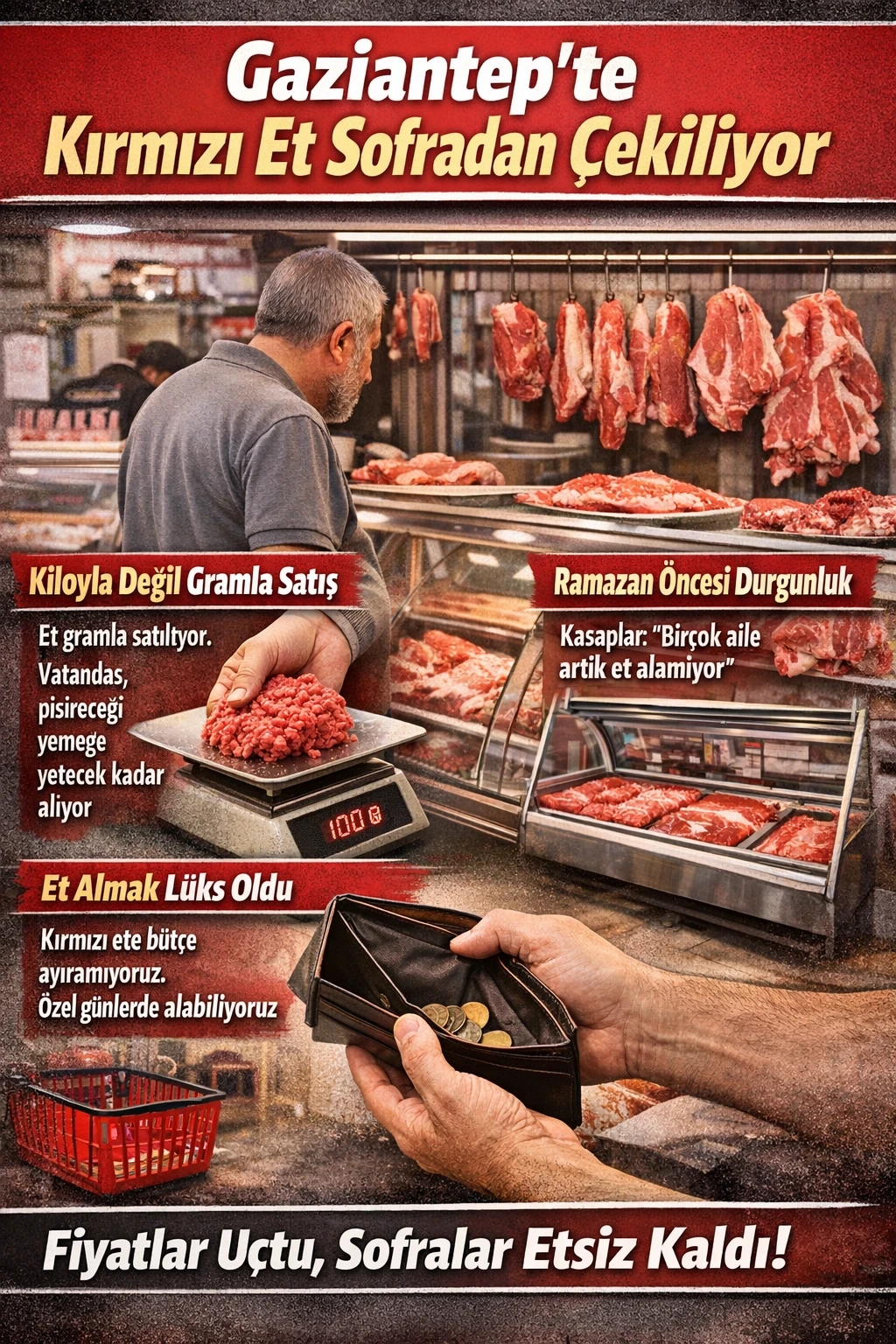 Yaşanan fiyat artışlarıyla birlikte Gaziantep’te kırmızı et, birçok hanede sofralardan çekilmeye devam ediyor
