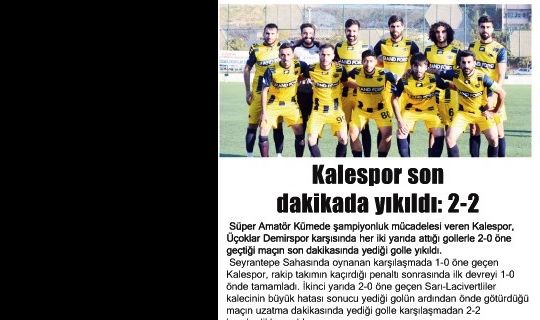 Teknoloji KALESPOR SON DAKİKADA YIKILDI KALESPOR SON DAKİKADA YIKILDI 27-11-2019 15:13 Editor : Amatörce Gazetesi KALESPOR SON DAKİKADA YIKILDI 1011 OKUNMA