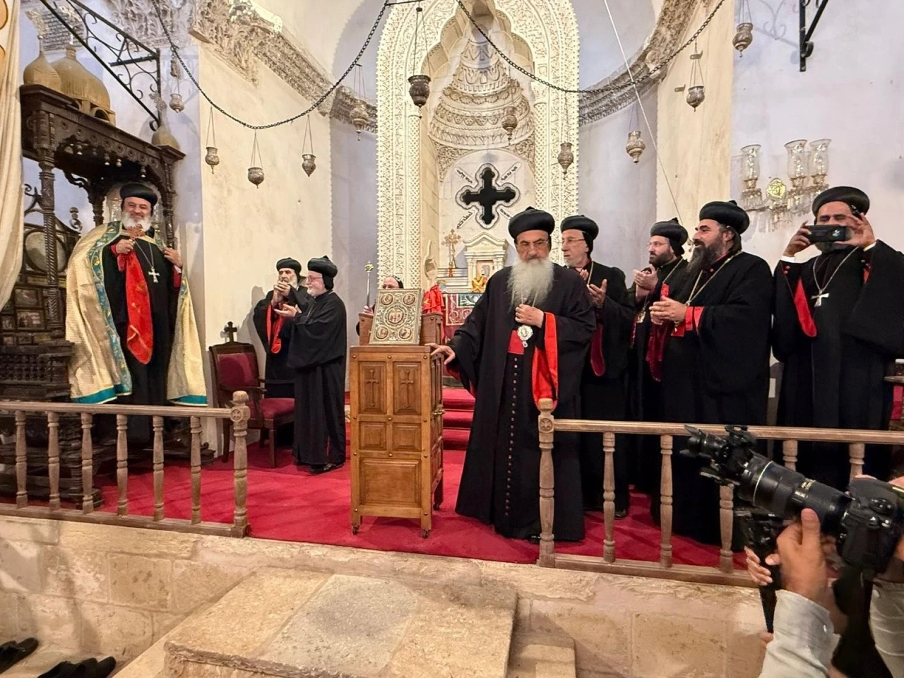 Deyrulzafaran Manastırını ziyaret eden Antakya Süryani Ortodoks Kilisesi Patriği Moran Mor İğnatius II. Efram Kerim, fil dişi patriklik koltuğuna alkışlar arasında oturdu, manastıra gelen Süryanileri takdis etti.