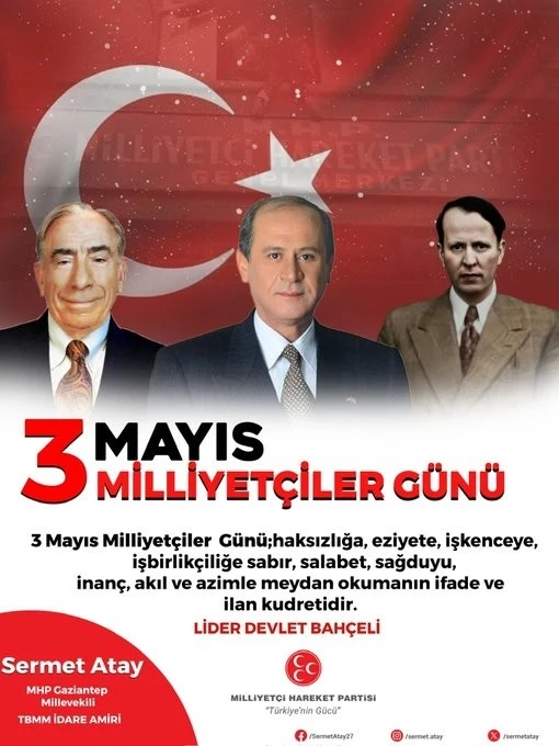Sosyal medya hesabı üzerinden yaptığı paylaşımda Atay, 3 Mayıs’ın Türk milliyetçiliği için taşıdığı derin anlamı şu sözlerle ifade etti: