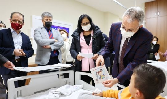 REKTÖR PROF. DR. ÖZAYDIN HASTA ÇOCUKLARA KİTAP DAĞITARAK MORAL VERDİ
