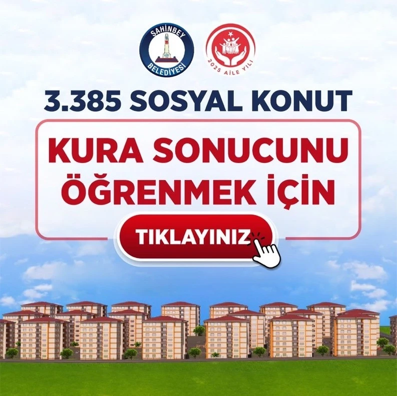 Hak sahipleri, kura sonuçlarını basvuru.sahinbey.bel.tr/konut?op=ks adresi üzerinden öğrenebilecek.