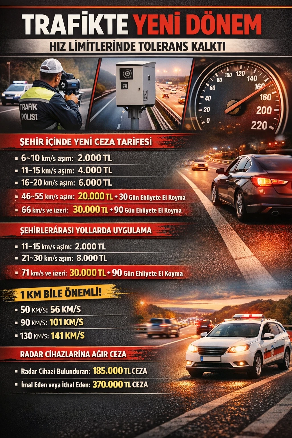 Yeni sistemle birlikte hız sınırlarının daha sıkı şekilde denetleneceği belirtiliyor. Uzmanlar özellikle radar uygulamalarının artırılacağını belirterek sürücülerin hız göstergelerini dikkatle takip etmeleri gerektiğini vurguluyor.